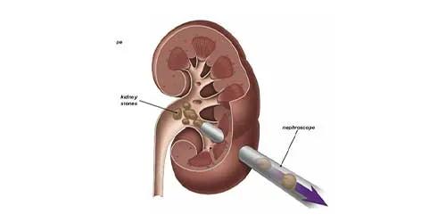 A minimally invasive surgical procedure used for large or complex kidney stones. A small incision is made in the back to remove the stones using a nephroscope.