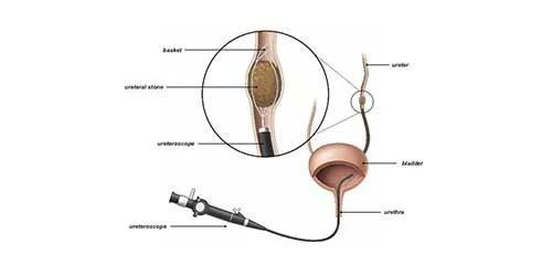 A procedure where a thin, flexible scope is inserted through the urethra and bladder into the ureter to remove or break kidney stones. Often used for medium-sized stones.